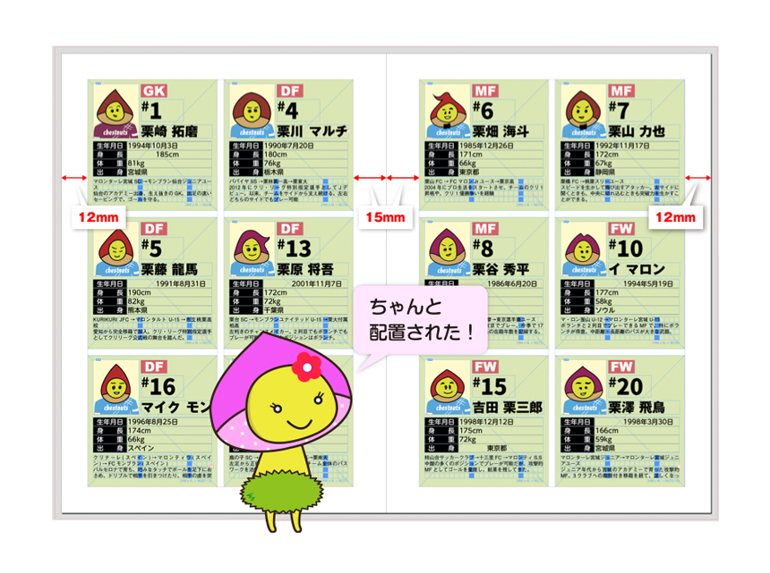 思った位置にフォーマットが複製されない時は、ページ上に余計なアイテムがないか確認してください。結合ドキュメントはページ上にあるアイテムを全て含めて作成されるので、余計なアイテムがあると、思った通りに複製されません。