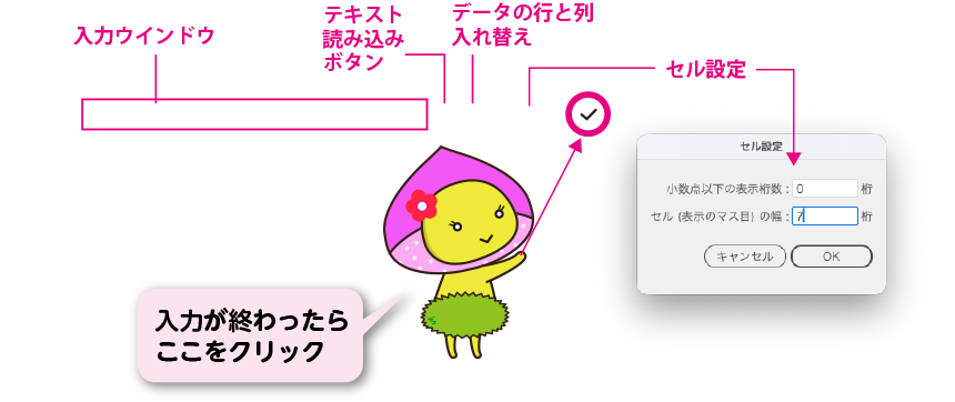 ドラッグまたはクリックすると、データ入力用のウインドウが開きます。