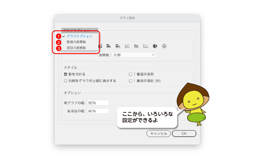 グラフツールをダブルクリックをすると、「グラフ設定」のダイアログが開きます。
