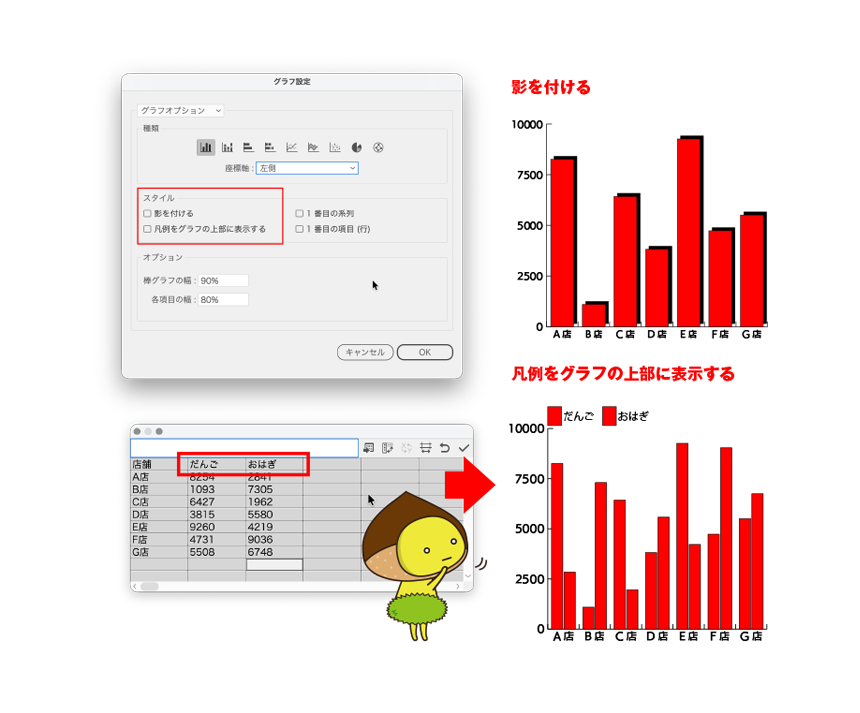 ・凡例をグラフの上部に表示する…棒グラフの場合は変化なし