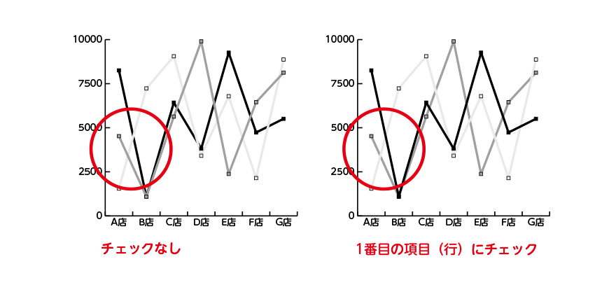 ・一番目の系列 一番目の項目…グラフ同士の重なりがある時に使用(※コラム参照)