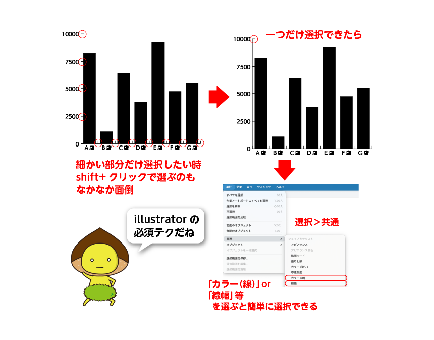 Illustratorには強力なグラフ機能が備わっていますが、グラフ機能を使用する案件が多い方と、ほとんど使った事がないという方がいると思います。普段あまりグラフ機能を使わない人も、Illustratorでどんなグラフを作成できるのか、おさらいしておいて、いざという時に使えるようにしておきましょう。