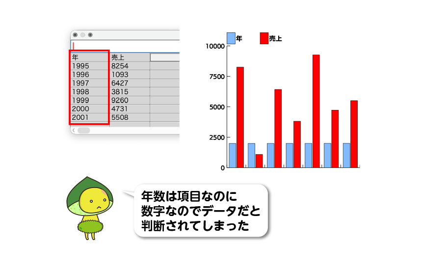 項目名が年号など、数字だけの場合、項目ではなく、数値と判断されて以下のようになってしまいます。