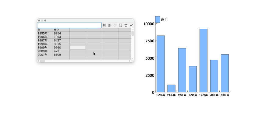 グラフツールでドラッグすると、そのスペース内に棒グラフが作成されます。